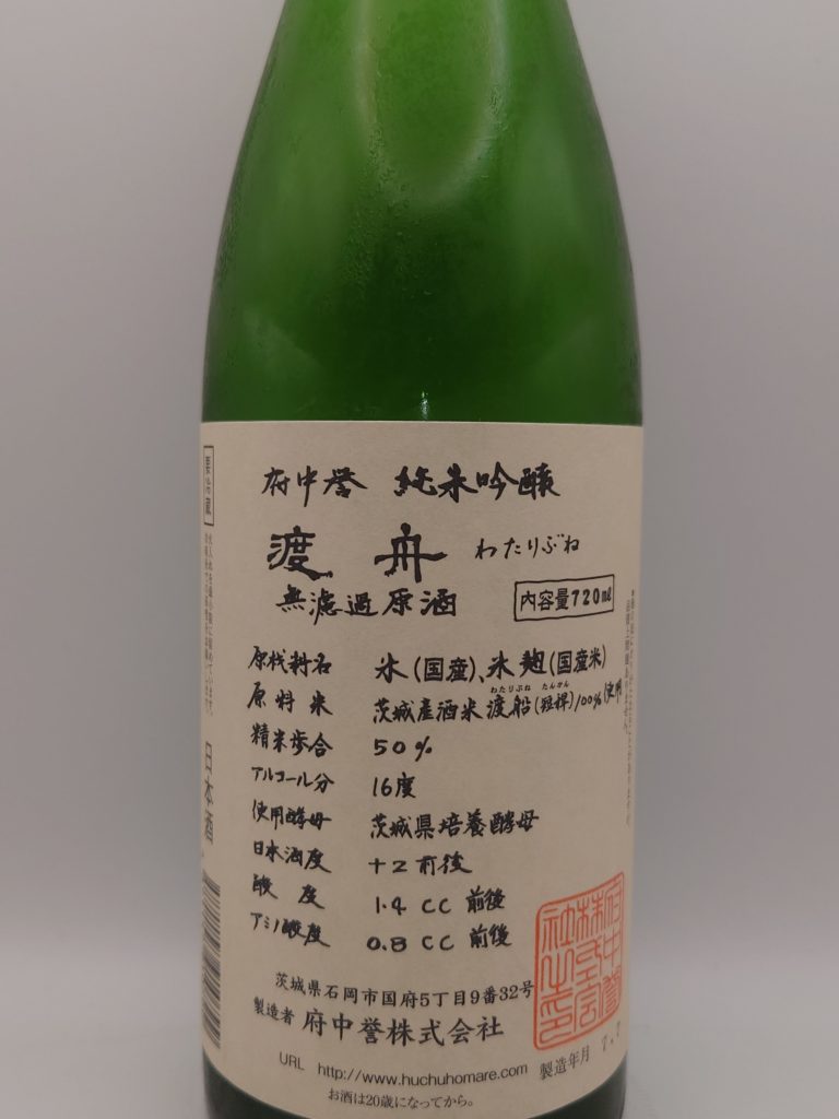 府中誉 純米吟醸 渡船 無濾過生原酒 (茨城県)