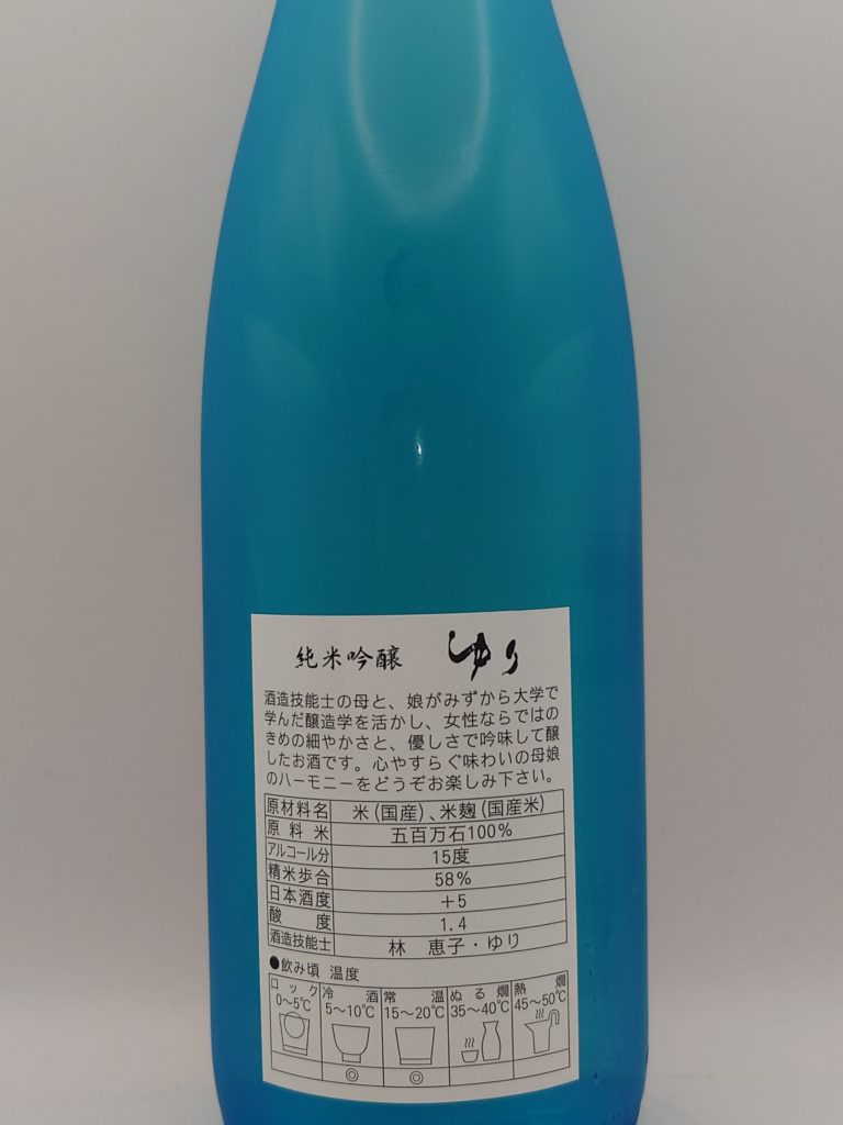 1794年に「永宝屋」の屋号で創業した、現在の「鶴乃江酒造」。その7代目当主の長女で杜氏でもある林ゆりさんと、母であり酒造技能士でもある林恵子さんの手によって、「女性が造る、女性におすすめのお酒」というコンセプトのもとに醸し出された銘柄が「ゆり」である。