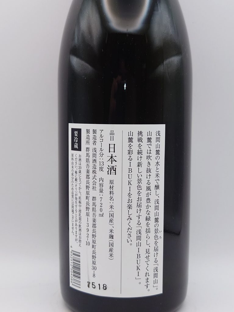 今回購入したのは、「浅間山 IBUKI」という銘柄。浅間山に吹く風を表現した一本で、酒造りの詳細な情報をあえて非公開にし、飲み手の感性で味わってほしいという挑戦的なスタイルを採っている。その味わいは、バナナを思わせる円やかな吟醸香に始まり、甘いキャベツを連想させるような柔らかな甘みと、それを引きずらない程よい酸味が心地よい。米の旨味を感じさせつつ、低アルコールに由来する軽やかな飲み心地。爽やかな風のような残り香が、静かに余韻を残す。