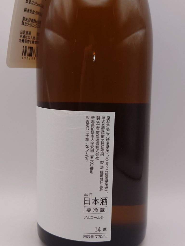 今回購入した「あべ+ ゴールド」は、日本酒造りで発生する酒粕から蒸留したアルコールを発酵中に加える「柱焼酎仕込み」を採用し、精米歩合45%まで磨いた自社田の新潟県産米を使用している。なお、アルコールを抜いた酒粕は水田の肥料として再利用され、循環型の環境づくりにも貢献している。