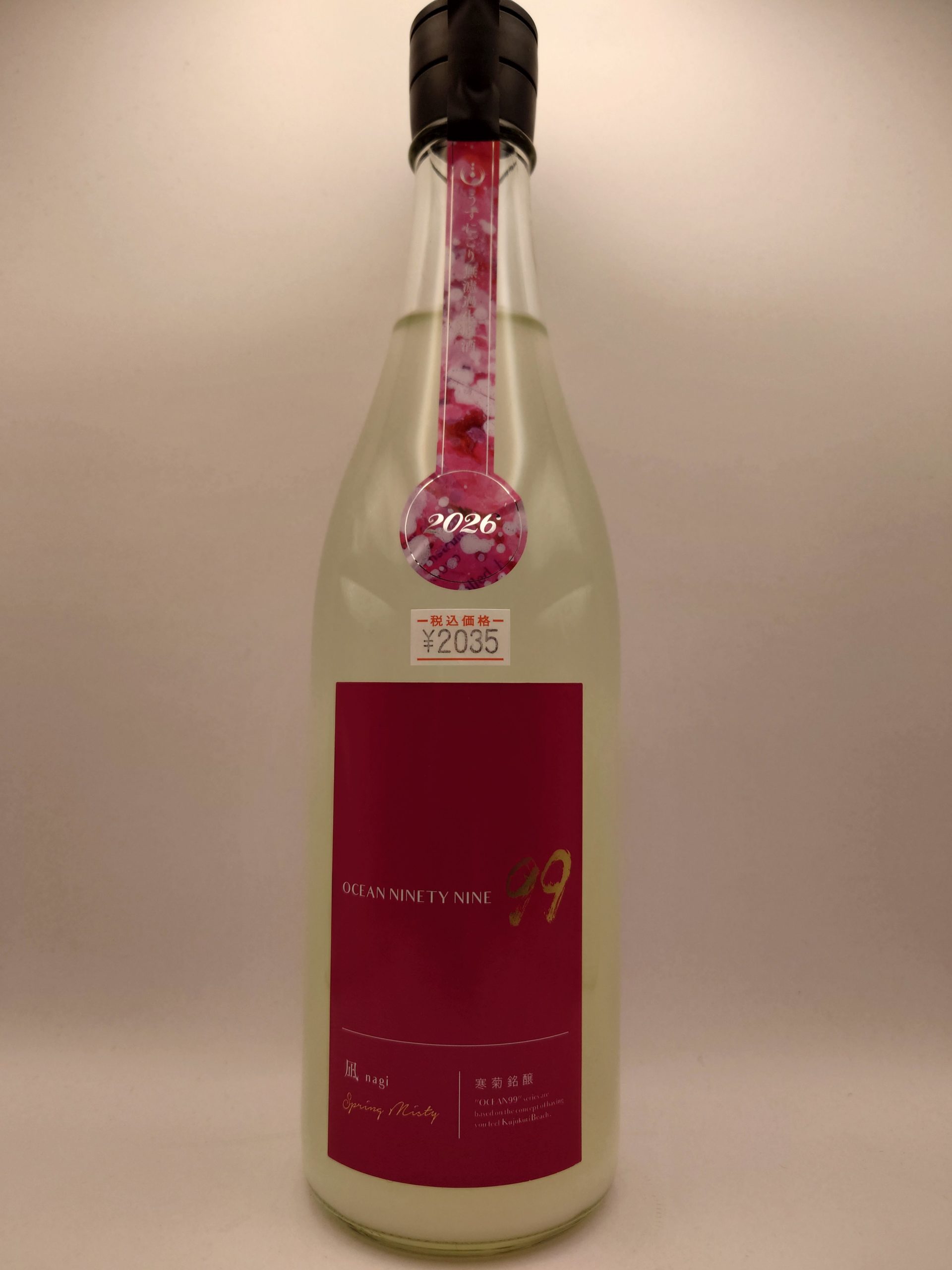 今回手に取ったのは、寒菊銘醸の人気シリーズ「OCEAN99」の春限定酒、「OCEAN99 凪 Spring Misty」。“OCEAN99”とは、蔵のすぐそばに広がる九十九里浜海岸を意味し、“海の99%はまだ知られていない”というコンセプトとともに、外房の海が持つ静けさ・透明感・奥行きを酒に映し取ろうとするシリーズである。「凪 Spring Misty」は、春の海に漂う“凪”の静けさと、春霞のような柔らかさをイメージして造られた一本だ。